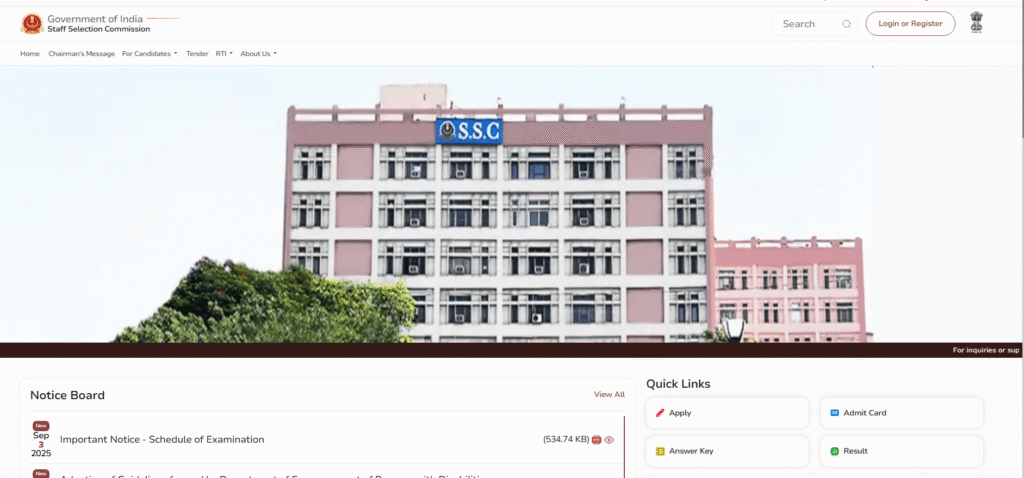 Step 1. सबसे पहले SSC की आधिकारिक वेबसाइट ssc.gov.in पर जाएं।